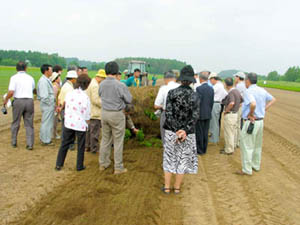 日本農林漁業振興協議会主催の「農林漁業技術・経営研修会」が6月18日(火)、有限会社竹内山林緑化農園にて行われ、全国から農林漁業界のトップリーダー各位がご参加されました。 当社のような山林苗木の大規模生産は、北海道外においては希な業種でありますが、平成9年度天皇杯拝受以降、当社の斬新な取り組みとその成果に多くの関心と評価をいただいております。研修日前夜の懇親会において、豊富な知識と経験を持ち合わせる各分野の第一人者の方々と当社職員は、親睦と意見の交流を深め、新しく得た知識を今後の苗木生産技術の向上に役立てたいと考えております。 この度の研修会は、日本農林漁業振興協議会事務局様と北海道山林種苗協同組合様のご尽力のもと盛会のうち閉会いたしました。最後となり誠に恐縮でありますが、厚く御礼申し上げます。 |