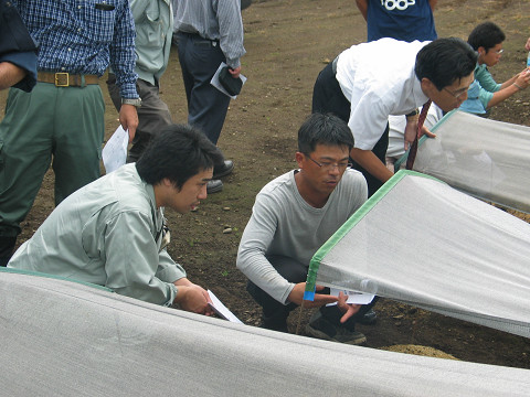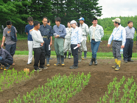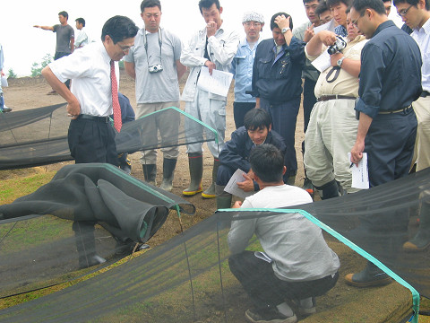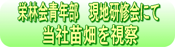 | 平成18年7月14日、栄林会青年部の現地研修会が行われ、弊社の苗畑を会員の皆様に見ていただきました。栄林会は大規模な山林を所有し、森林経営を行っている企業等が会員となり、それぞれお互いの貴重な情報交換の場となっています。 |