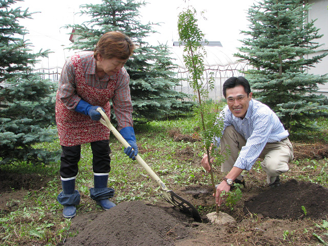 アカエゾマツ・ミズナラ・ナナカマドを、社員全員で植樹しました