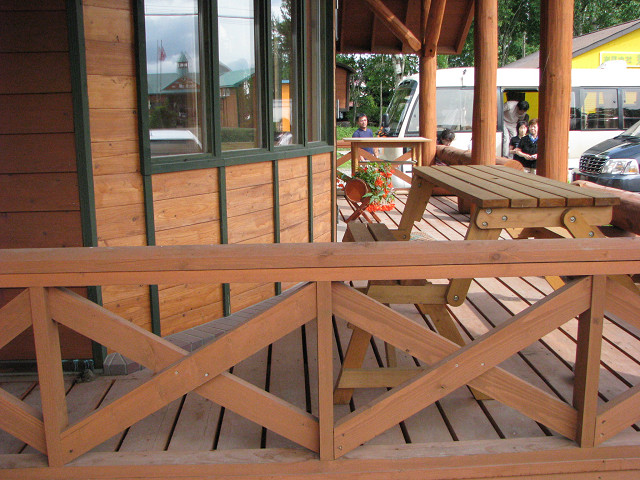 | おもにカラマツ材で作られた事務所は、数十年前に自社で出荷したカラマツかもしれないとお話されていました。 | 苗畑の様子。斜面が多い弊社とは違い、全ての苗畑で景色が一面に広がっていました。 | |