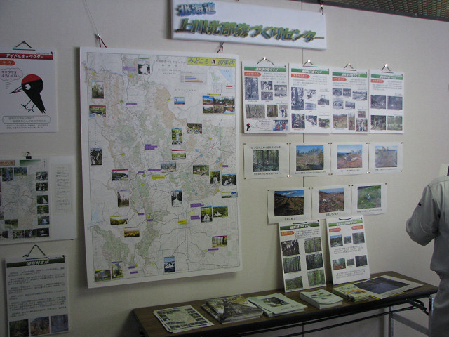| 天塩川流域森づくりの集い 会場の様子 | ブースに設置されたパネルの数々 |