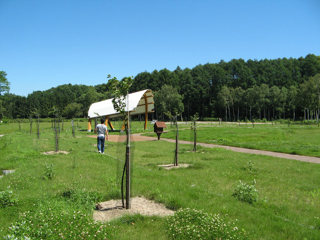 | 平成20年8月5・6日の2日間、北海道山林種苗協同組合の青年部研修会が行われ、平成19年に苫小牧で行われた全国植樹祭記念植樹会場の見学と、同じく苫小牧にある潟Cワクラの工場見学に参加して参りました。 全国植樹祭記念植樹会場では、植樹祭参加者が植えた苗木が、支柱の設置や下刈等で管理され、順調にすくすくと育っていました。また、昨年12月に宮内庁から伝達された、天皇陛下がお詠みになられた御製(短歌)の記念碑が会場内に建立されており、森林づくりが将来の世代へしっかりと引き継がれることを、参加者は願っておりました。 |