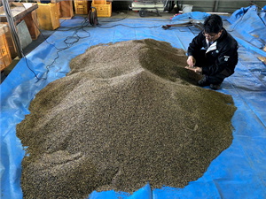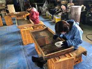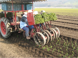 雪が解けると、トラクターでカラマツの根切り作業をして幼苗を掘取し、規格ごとに数段階にわけます。